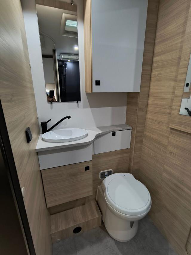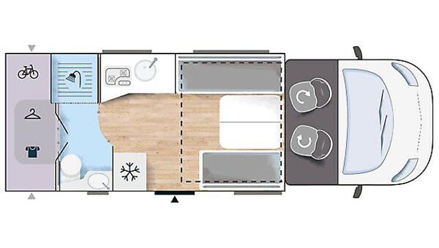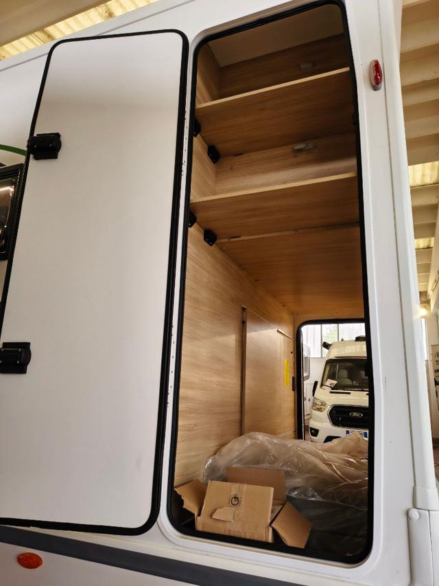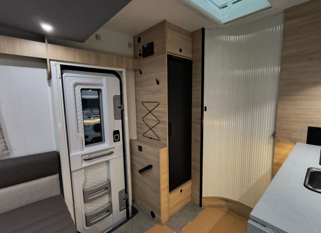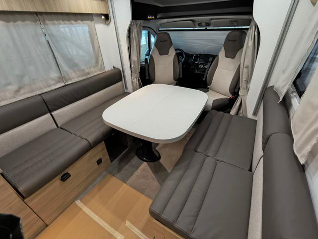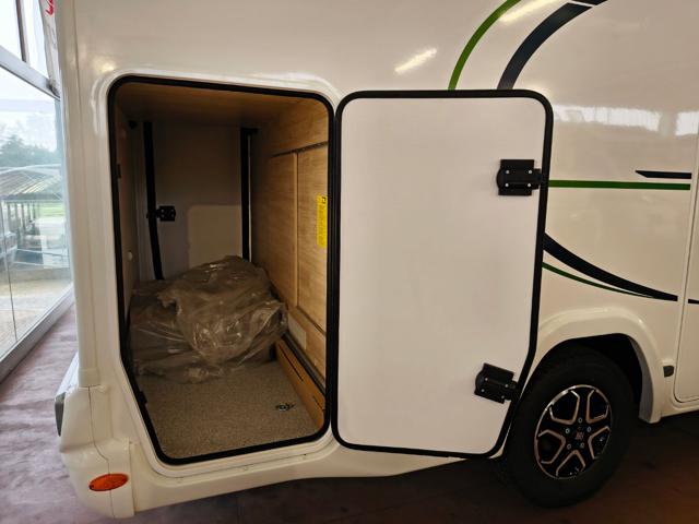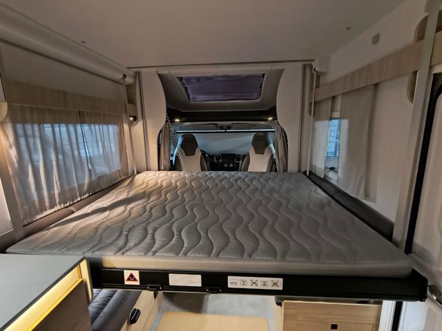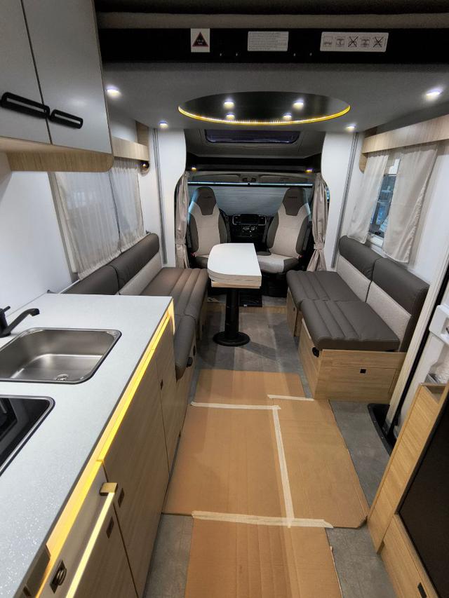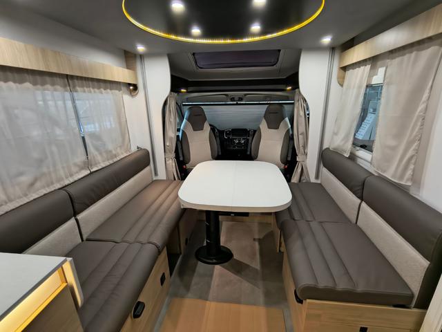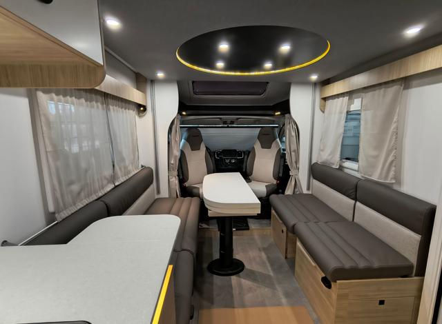 ULTIMATE LINE Climatizzazione manuale di cabina • Airbag conducente + passeggero • Fix and go • Sedili cabina girevoli regolabili in altezza con doppio bracciolo • Fodere sedili cabina coordinate con i tessuti cellula • Retrovisori elettrici con sbrinatore • Regolatore e limitatore di velocità • ESP • Traction + • Hill descent control • Eco pack: Stop&Start, alternatore intelligente, pompa carburante a gestione elettronica • Isolamento Gradino di ingresso • Porta della cellula XL (60 cm) con finestra • Tetto panoramico apribile • Oblò panoramico • Tende di separazione cellula/cabina • Finestre doppio vetro con combinato oscurante/zanzariera • Tende • Cerniere ammortizzate per armadi • Presa USB/USB-C • Struttura IRP: tetto/pavimento/pareti poliestere • Technibox • Paraurti verniciato • Cerchi in lega • Pneumatici 4 stagioni • Fendinebbia • Porta d’entrata “lusso”, chiusura centralizzata cabina/cellula • Pre-equipaggiamento TV • Riscaldamento a gasolio che utilizza il carburante del veicolo utilizzabile in marcia • Illuminazione esterna sportello di ingresso • Armadio • Fissaggi Isofix •