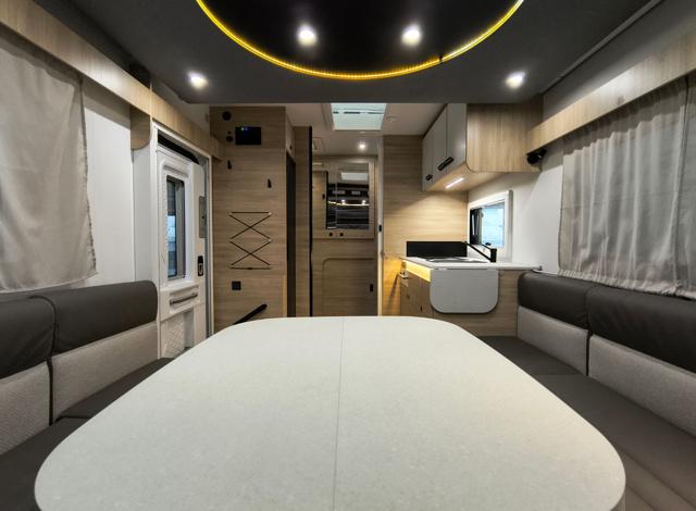 - Layout Smart Lounge: L'ampia zona giorno con divani laterali si trasforma rapidamente in due sedili frontemarcia omologati per il viaggio.
