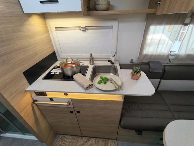 - Impiantistica e Clima: Riscaldamento a gasolio (utilizzabile anche durante la marcia), struttura ad alto isolamento termico IRP (con pavimento da 64 mm di spessore), illuminazione a LED e prese USB/USB-C distribuite nei punti strategici.