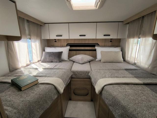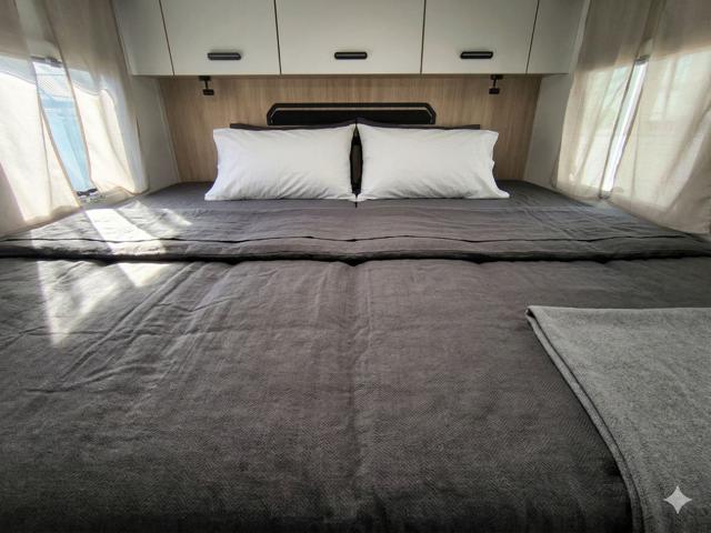- Zona Notte: Letti gemelli posteriori di grandi dimensioni. Grazie al kit di estensione fornito di serie, possono essere unificati in un maxi matrimoniale "King Size".