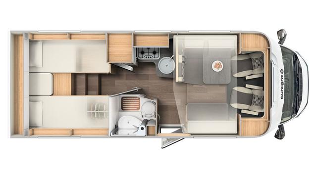 - Letto Basculante Anteriore in Dinette: Per un letto matrimoniale extra o per ospiti, senza compromettere gli spazi.